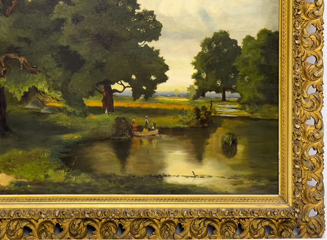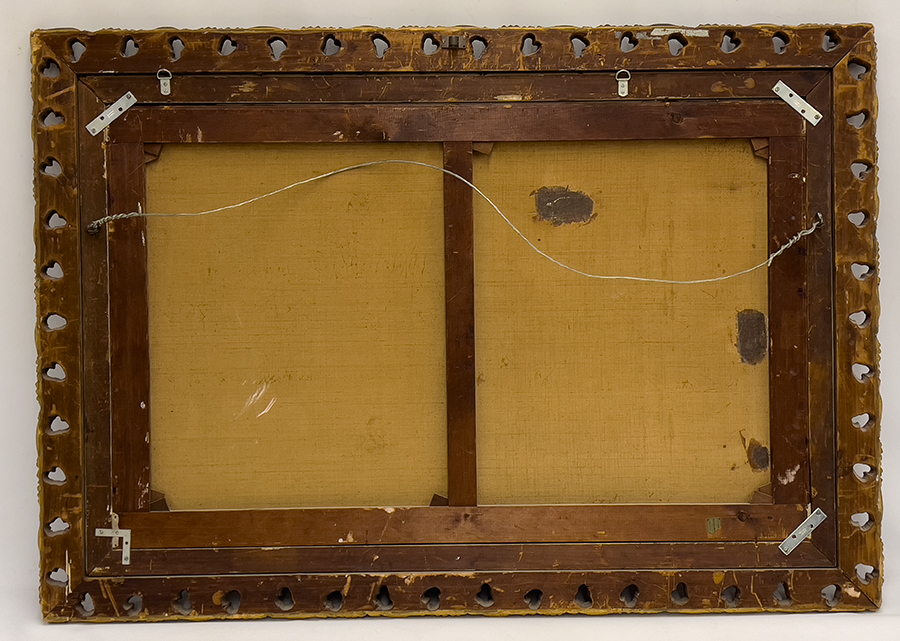 unsigned; oil/canvas; 31 by 49 in.; ornate, pierced gilt frame 41 by 58.5 in.