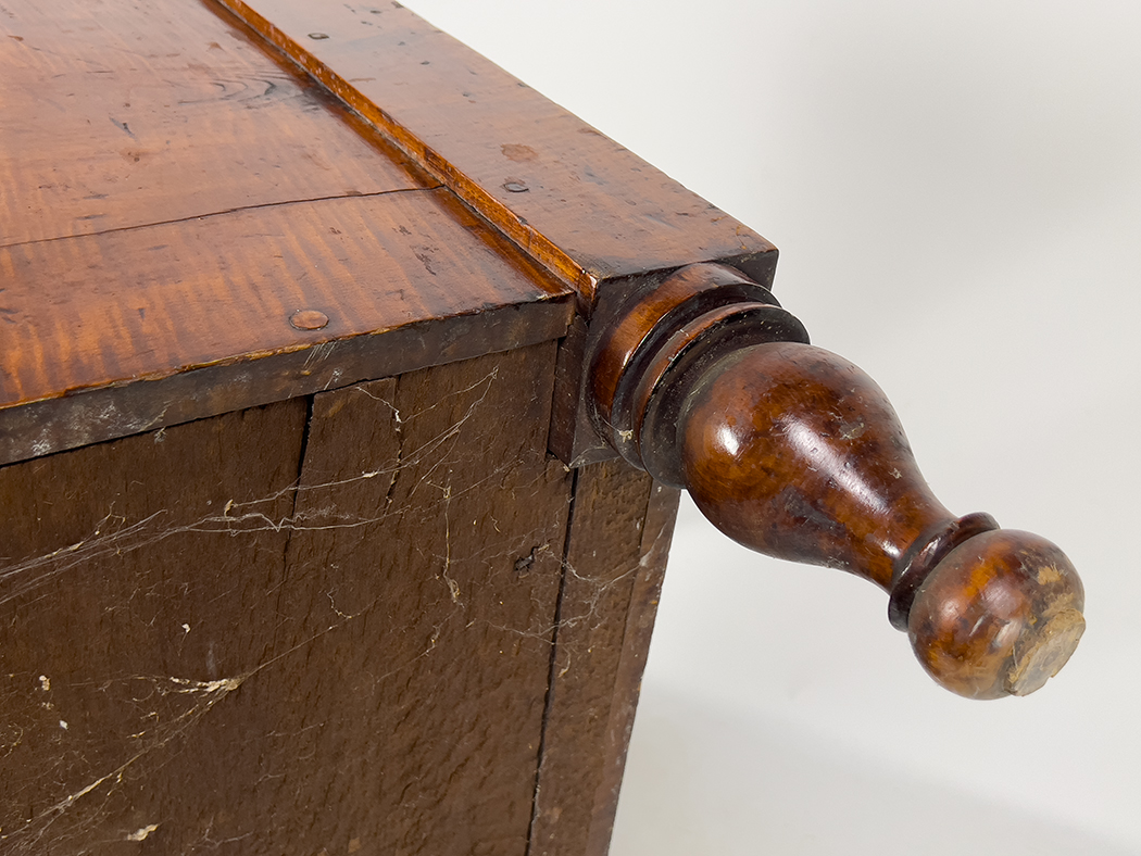 c. 1800, hinged top; bold turned legs; 33.5"h; 48.5"w'28.5"d