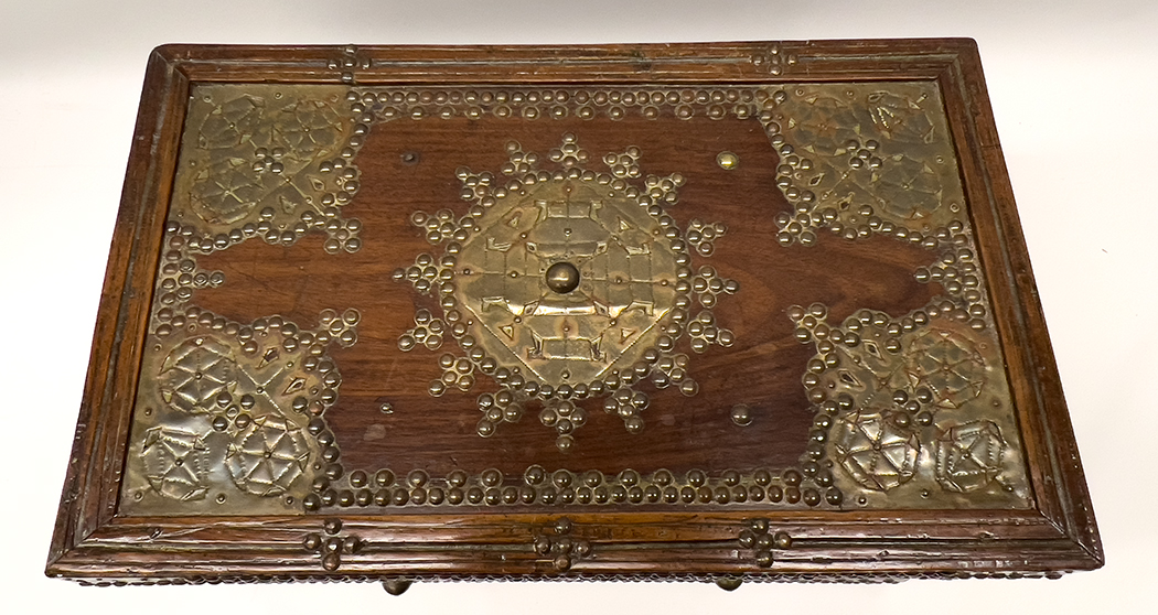 SPANISH/MOORISH BRASS-STUDDED WALNUT DESK BOX