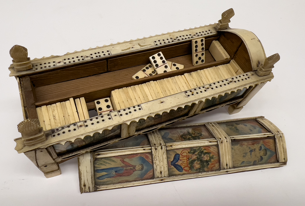 Lot 166 : NAPOLEONIC PRISONER OF WAR BONE CRIBBAGE/DOMINO CASKET
