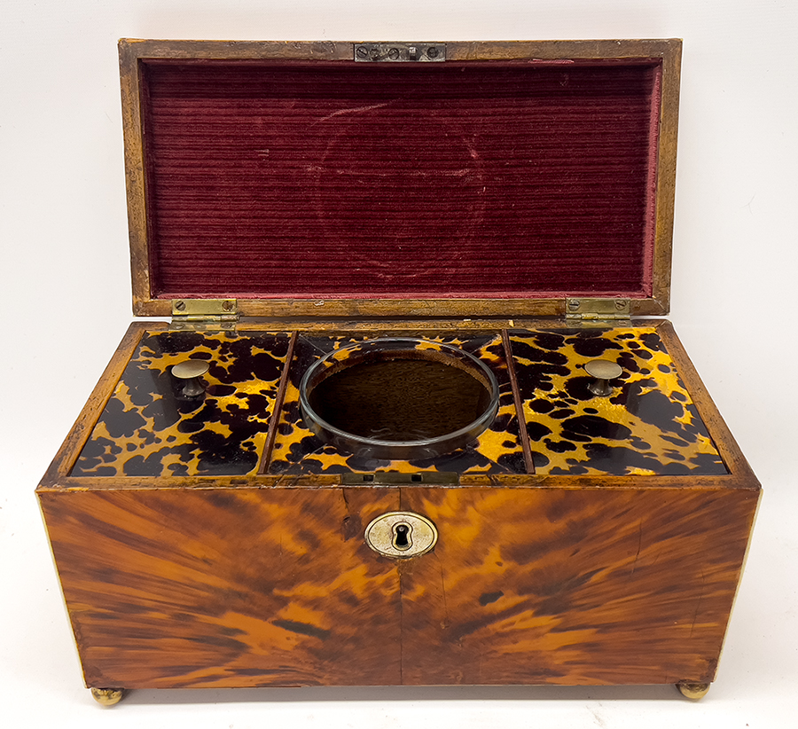 Lot 181B : ENGLISH REGENCY TORTOISE SHELL TEA CADDY