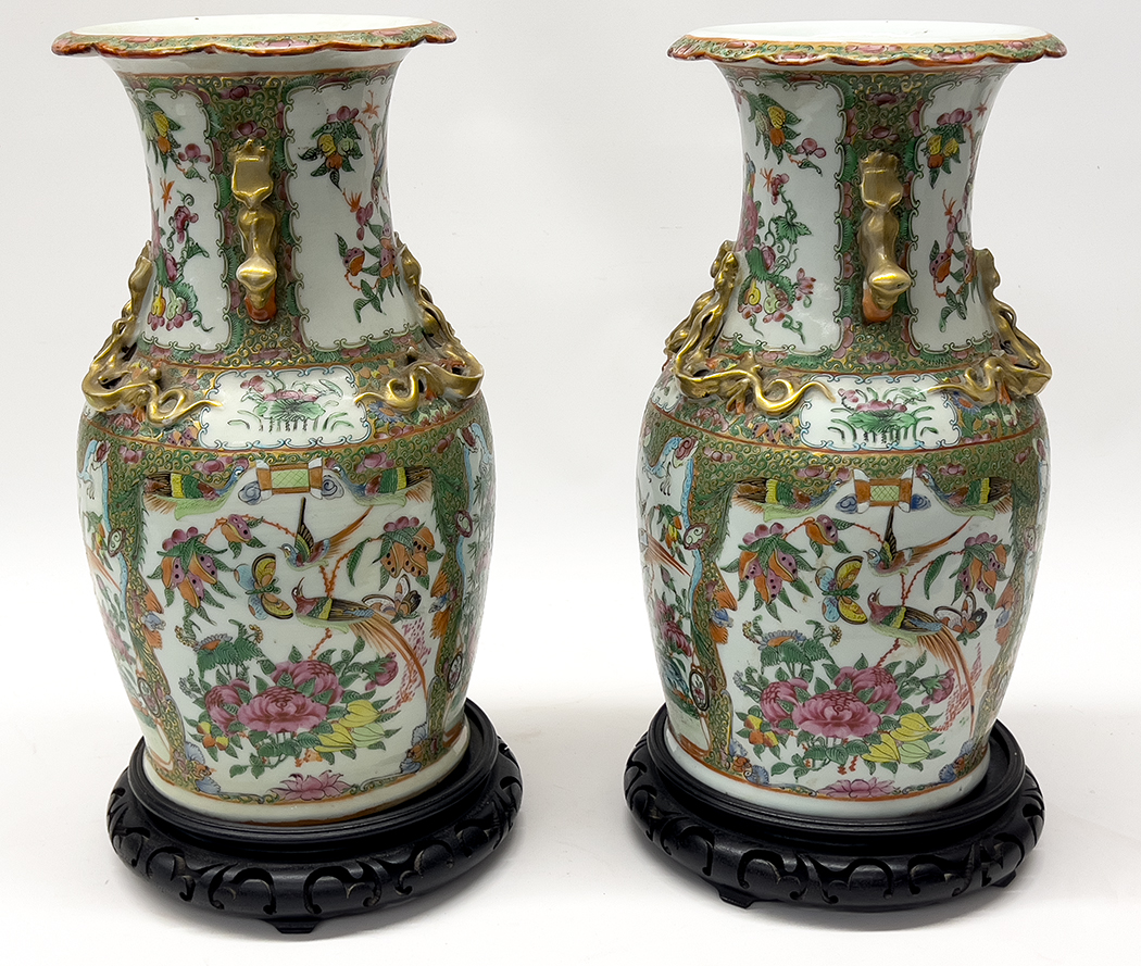 PAIR OF CHINESE EXPORT PORCELAIN ROSE FAMILLE VASES