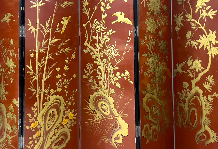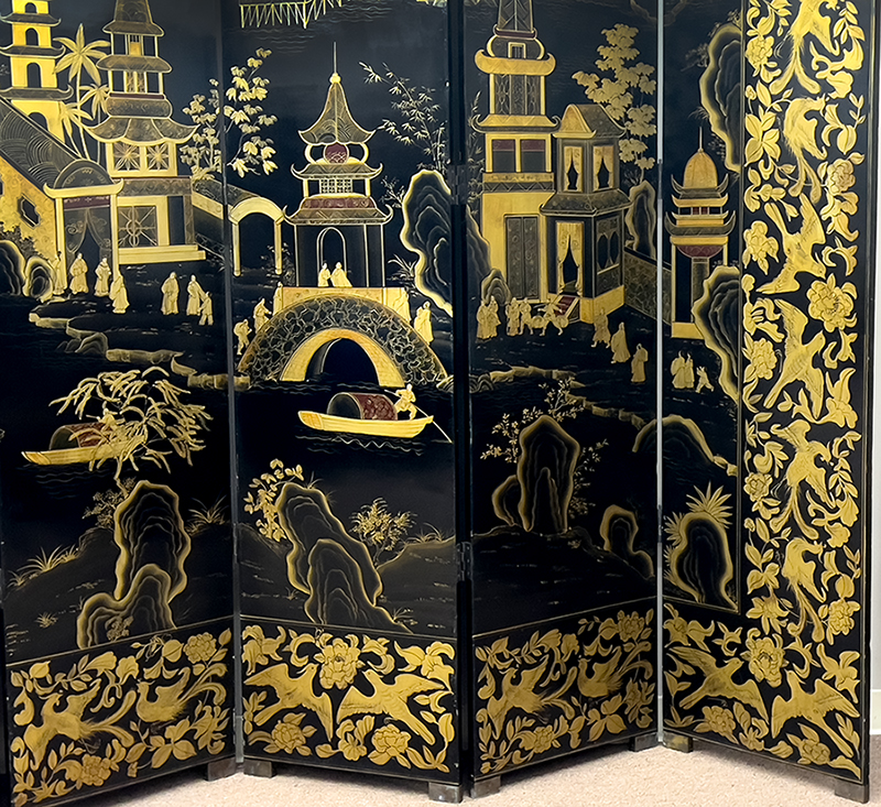 IMPRESSIVE CHINESE 8-PANEL LACQUERED SCREEN