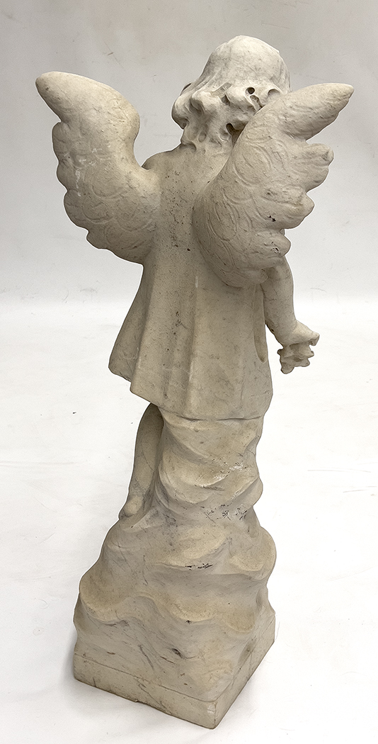 young girl angel dispersing flowers; 37"tall; 18.5"w; 12"d